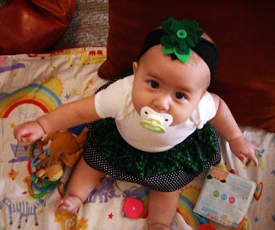 It’s my favorite holiday because I really have respect for the lessons that St. Patrick taught. But the baby didn’t have any green. And I couldn’t just stop at a new flower for her headband. I really can’t be making her a new outfit everyday. Oh well have something green and Irish.