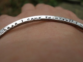 It seems like jewelry ought to appear somewhere. I’m a bangle girl and I especially like things with meaning. What better way to get meaning into a piece of jewelry than engraving it. I just adore this double sided engraved bangle by deliasthompson.