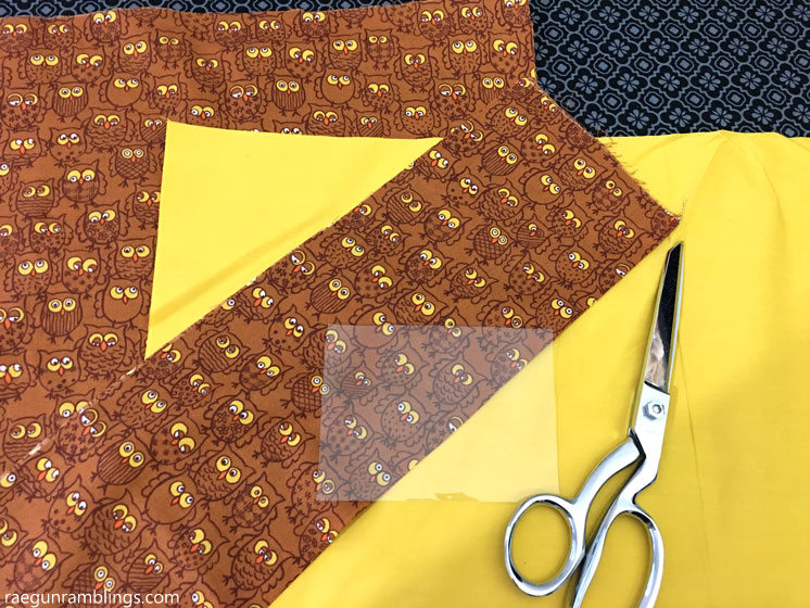- Cut Outer into two pieces each 16 inches wide x 17 tall. Make sure your fabric faces the right direction if it’s a directional print.
