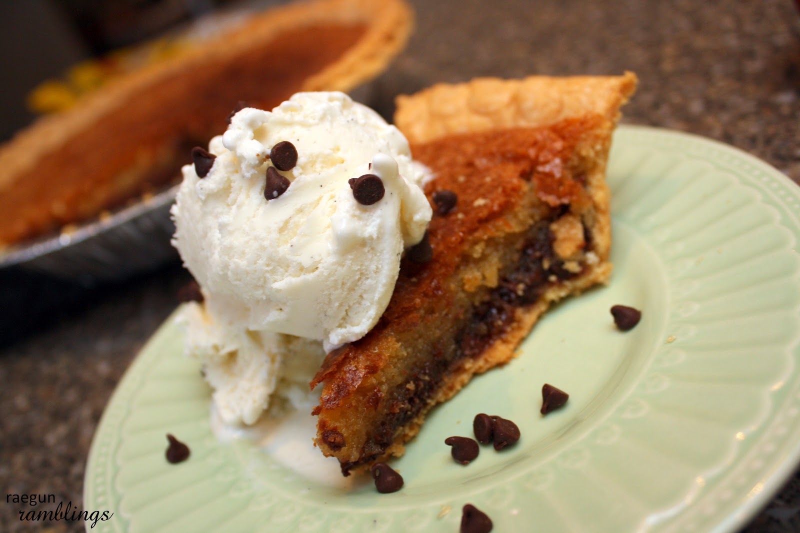 For those who don’t know, Tollhouse pie is a chocolate chip cookie pie. Think warm delicious homemade chocolate cookies fresh from the oven.